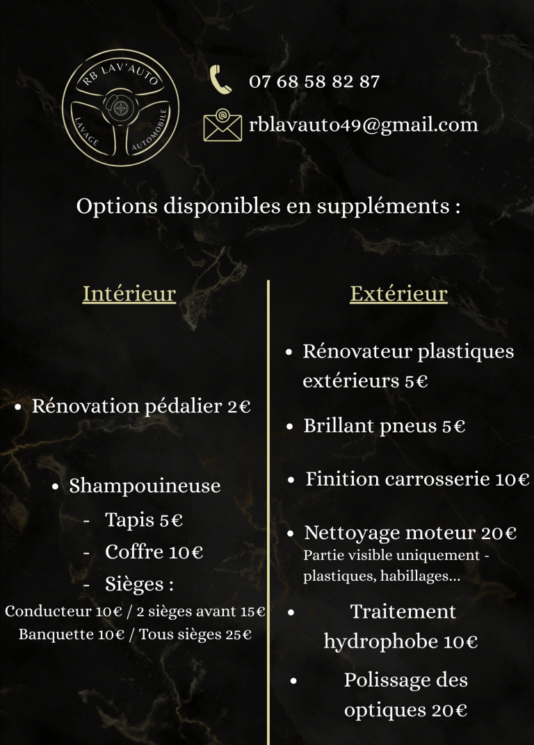 Si vous souhaitez ajouter des finitions à votre nettoyage, découvrez les options supplémentaires ainsi que leurs tarifs.